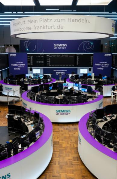 西門子能源股票在法蘭克福證券交易所監(jiān)管市場(高級(jí)市場)交易,交易代碼為ENR,國際證券識(shí)別碼為DE000ENER6Y0,德國證券識(shí)別碼為ENER6Y。