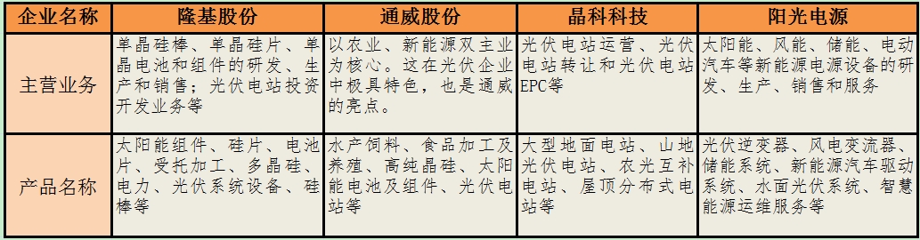 四大光伏龍頭企業(yè)主營(yíng)業(yè)務(wù)及產(chǎn)品一覽表
