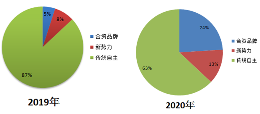 (3)市場集中在“頭部”,造車新勢力快速崛起