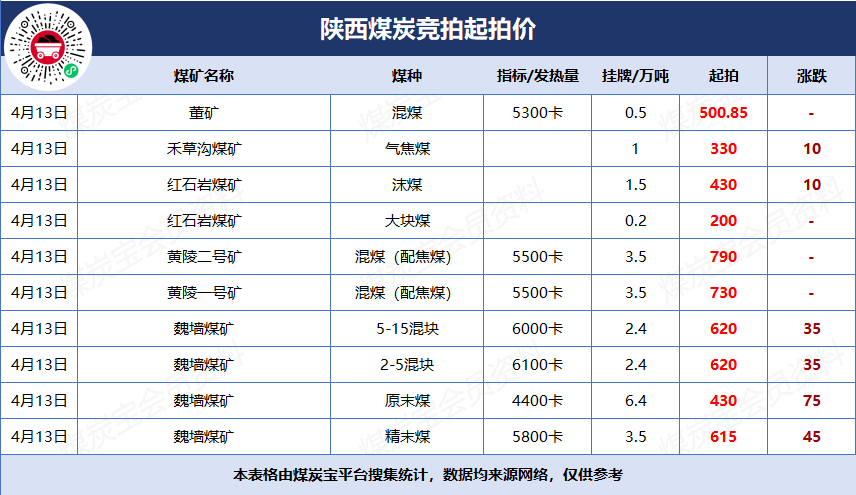 4月13日陜西煤炭競拍行情圖