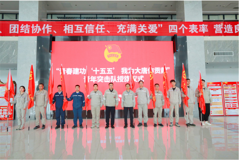 活動現場,公司正式成立智能監盤自主實施、大唐農高區400MW光伏發電項目等10支青年突擊隊,并為各突擊隊授旗,鮮紅的隊旗承載著使命與重托,凝聚著公司對青年隊伍的殷切期望,更點燃了青年職工沖鋒在前、勇挑大梁的奮斗熱情。“我志愿加入青年突擊隊,以青春之名,立攻堅之志……”隨后,青年突擊隊員們面對旗幟,鄭重高舉右拳,鏗鏘誓言回蕩現場,彰顯出大唐青年矢志奮斗、實干擔當的堅定決心。