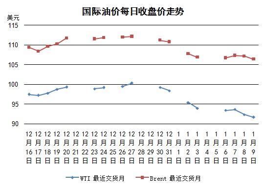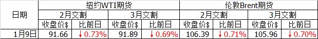 • 1月9日國際油價繼續下跌 布倫特為11月上旬以來最低值