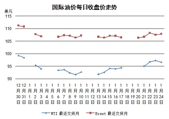 阿根廷、土耳其、南非等新興國家貨幣匯率下跌,使得人們對新興國經濟的未來前景產生擔憂,出現拋售風險資產的動向。美歐日股市紛紛下跌,世界能源消費走弱的可能性增加,這都利空油價。另外,市場擔憂美聯儲會繼續加強收緊量化寬松。不過當日布倫特油價小幅反彈。