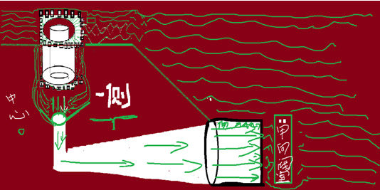 能源用不完模式中的“用不完”,應(yīng)該作如何理解?下面,我援引三峽電站為例,以2014年我國(guó)全年用電總量數(shù)據(jù),結(jié)合三峽電站年發(fā)電量來(lái)具體算一筆賬,然后再做更進(jìn)一步的分析。三峽工程是目前世界上最大的河川發(fā)電工程,也是陸上河流發(fā)電的偉大創(chuàng)舉,至今世界上再無(wú)第二個(gè)發(fā)電工程可與之相比。它的功能,除了發(fā)電之外,還有防洪、防旱、防澇、航運(yùn)、灌溉等綜合功能,它和伊泰普電站每年都在爭(zhēng)奪發(fā)電總量世界第一的寶座。海濱水電城模式在正常排水狀態(tài)下,排水速度是遠(yuǎn)遠(yuǎn)超過入水速度的,因此水庫(kù)無(wú)論多大,都可以做到連排連注(下圖是單庫(kù)連排連注之一種,當(dāng)水庫(kù)水滿以后,自動(dòng)關(guān)閉水庫(kù)的入水口,進(jìn)行外力打擊型排水,瞬間即成,再打開入口閘門,繼續(xù)注水。可以有很多種樣式,也可以多建水庫(kù),順序打擊排水,但較麻煩些,不如這種好),最終挑戰(zhàn)的是人類社會(huì)的制造能力。當(dāng)然整個(gè)電站只有一個(gè)水輪機(jī)和一個(gè)水庫(kù)的情形是難以存在的,也沒必要。在人類制造能力還很有限的時(shí)候,可以用數(shù)量來(lái)彌補(bǔ)制造能力的缺陷。但因其空前強(qiáng)大的排水能力,能源用不完是必定無(wú)疑的。單向閥水庫(kù)的排水力度之所以空前強(qiáng)大,其原因,一個(gè)是連排連注模式,另一個(gè)是向海的排水閘門巨大,如前面提到的“球拍”出水口,有的達(dá)幾十米高,并且每天每時(shí)都在排水,是全天候的排水水庫(kù)模式。圖二十是一個(gè)單庫(kù)“連排連注”模式示意圖,這個(gè)圖示還可以在以上基礎(chǔ)上稍稍改進(jìn)一下,比如進(jìn)氣方向(紅色箭頭)可以與注水方向保持大體一致,順流而擊,這樣一來(lái),就可以不關(guān)進(jìn)水口,只要保持一定節(jié)奏感和頻率的打擊就行了。(水庫(kù)一滿立即打擊,基本上不耽誤連續(xù)注水)