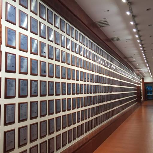 位于北京奧林匹克森林公園里的漢能總部,有一個展廳格外引人注意,那是一面近50米長的專利墻,上面鑲滿了一塊塊木質牌匾,每塊中間都嵌有一張專利證書,放眼望去,蔚為壯觀。這面墻在漢能內部被叫做“專利墻”。