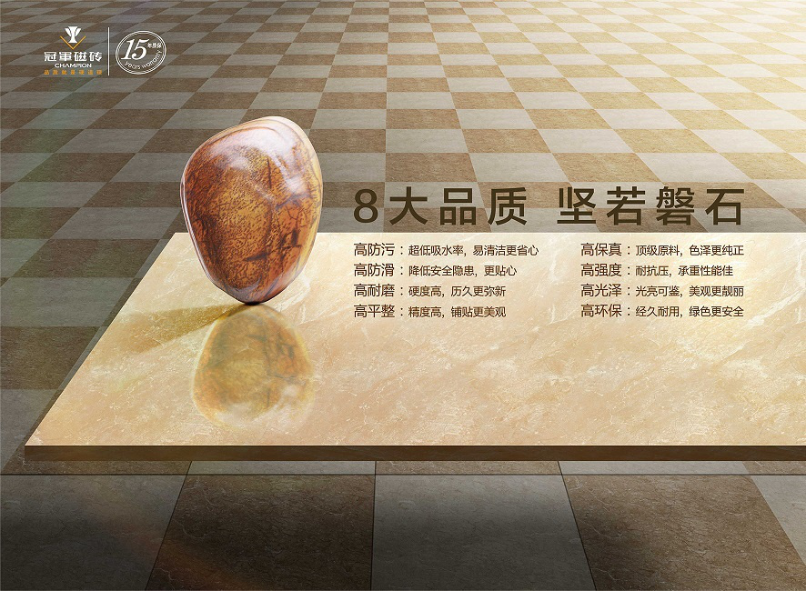 品質(zhì)是產(chǎn)品的生命,在過去的四十五年中,冠軍磁磚始終堅(jiān)持走品質(zhì)路線,堅(jiān)持生產(chǎn)高品質(zhì)瓷磚,為消費(fèi)者創(chuàng)造和諧自然的空間。相信在2017年,冠軍磁磚將承延“品質(zhì)就是硬道理”的理念,視質(zhì)量為企業(yè)的生命和品牌的根本,認(rèn)真履行對(duì)消費(fèi)者的各項(xiàng)承諾,誠懇接受社會(huì)各界的監(jiān)督與檢驗(yàn),努力實(shí)踐“品質(zhì)至上”的宏偉藍(lán)圖。