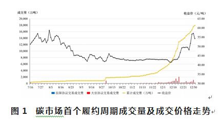 圖1 碳市場首個履約周期成交量及成交價格走勢